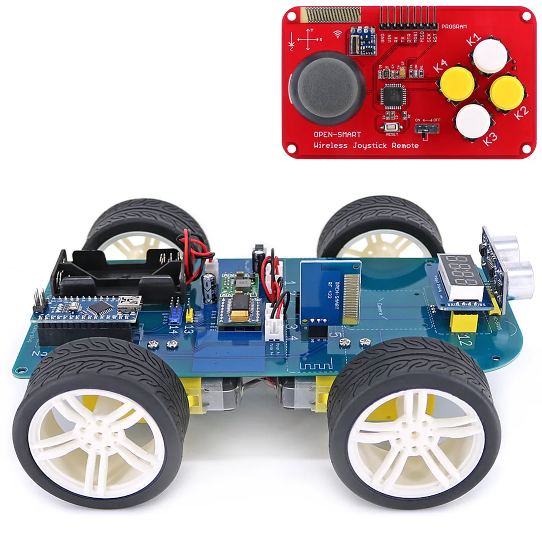 4WD 433MHz Wireless JoyStick Remote Control Rubber Wheel Gear Motor DIY Smart Car Kit for Arduino H