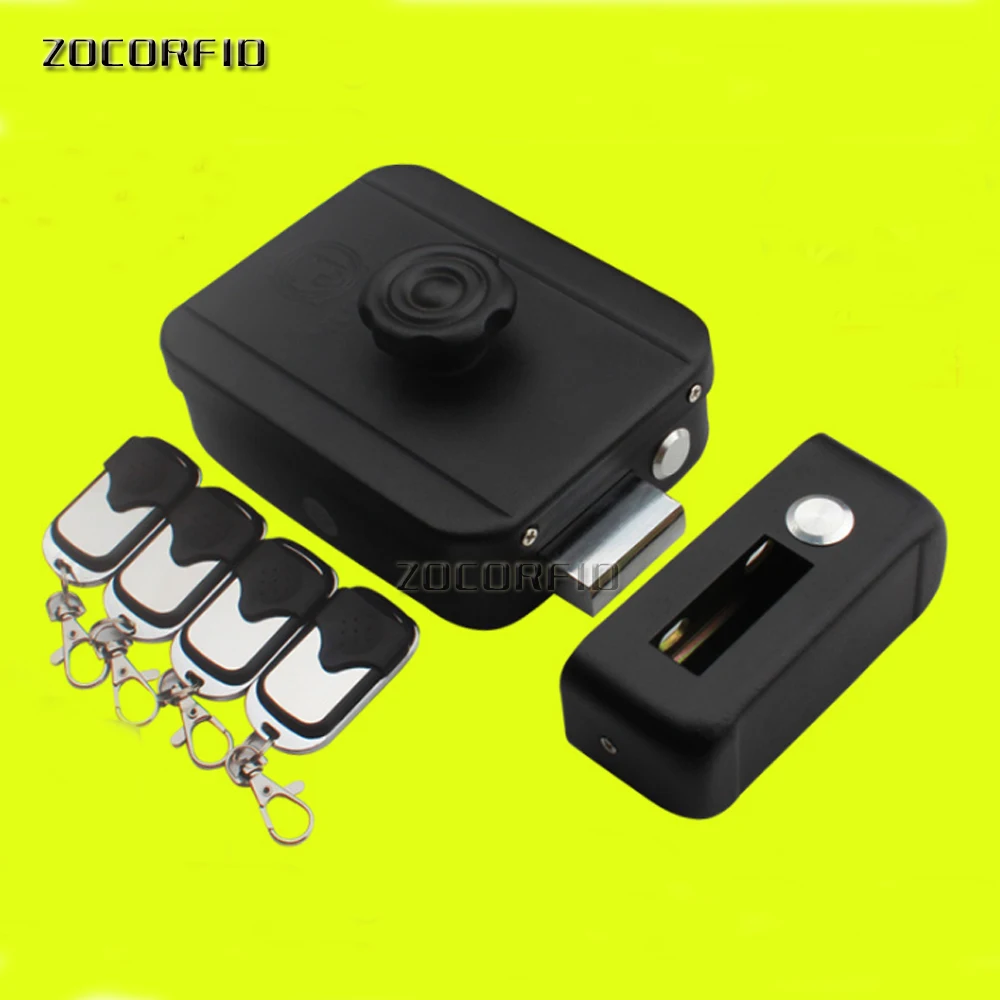 Dry battery power 4 remote controls wireless outdoor gate door castle electric drop bolt lock (no b